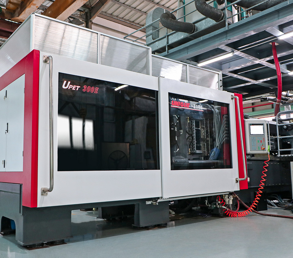 U-PET自推出以來,以其卓越的性能優(yōu)勢備受全球業(yè)界青睞,它們易于使用,生產(chǎn)效率高。2021年9月,為順應行業(yè)發(fā)展需要,廣州一道憑借雄厚的技術(shù)積累與制造實力,在原有基礎(chǔ)上研發(fā)出UE-PET系列瓶坯注塑系統(tǒng)(以下簡稱UE-PET)。與其不同的是,UE-PET擴大了應用范圍,融合了U-PACK動態(tài)成型注射機的諸多優(yōu)勢,極具性價比。它采用國際領(lǐng)先的優(yōu)化高剛性五點式合模機構(gòu)設(shè)計,配合Unique所擁有的知識產(chǎn)權(quán),以國內(nèi)優(yōu)質(zhì)伺服驅(qū)動供應商(匯川)與KEBA PLC控制系統(tǒng)為基礎(chǔ),一起將程序優(yōu)化后運用于瓶坯注塑工藝,是一款經(jīng)濟高效能的新型注塑系統(tǒng)。