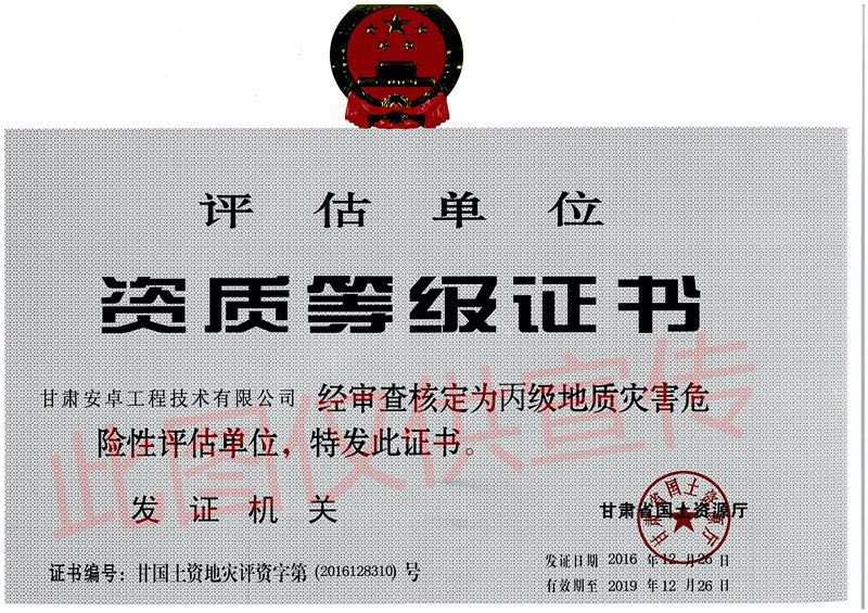 • 【地災(zāi)資質(zhì)】地質(zhì)災(zāi)害危害性評(píng)估證書