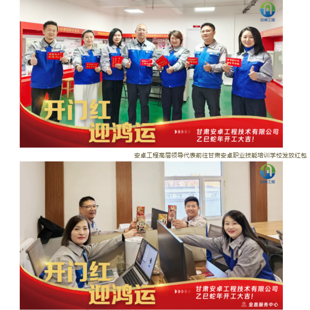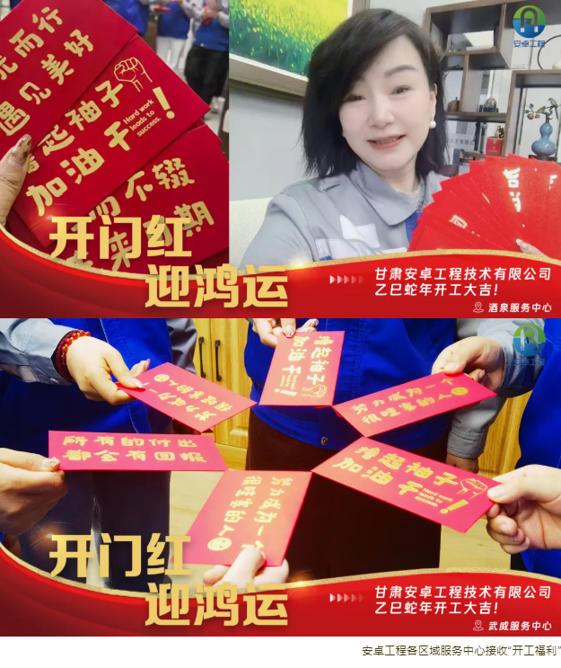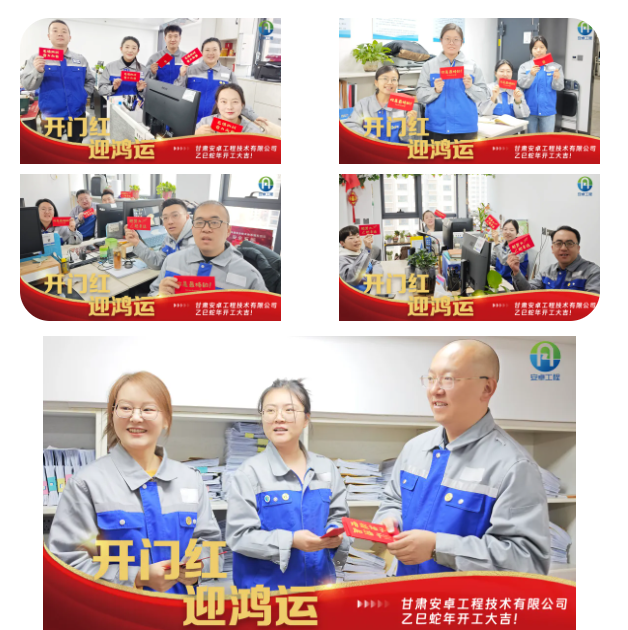 2月10日,正月十三,在這個(gè)洋溢著喜慶與祥和的美好日子里,甘肅安卓工程技術(shù)有限公司迎來了充滿生機(jī)與活力的開工大吉。全體員工精神抖擻,以踔厲奮發(fā)、篤行不怠的昂揚(yáng)姿態(tài),滿懷激情地迎接這一開工儀式,共同翻開了蛇年的嶄新篇章。公司董事長(zhǎng)龔復(fù)學(xué)、副董事長(zhǎng)田苗、總經(jīng)理趙童潔、事業(yè)合伙人代表等高層領(lǐng)導(dǎo)親臨每一間辦公室,為員工送上“開門紅”紅包,寓意新的一年紅紅火火、福氣滿滿。